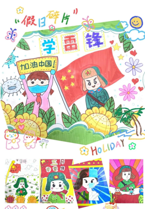 五彩的世界是绚丽缤纷的,雷锋的精神是永垂不朽的。孩子们在老师和家长的指导下拿起手中的画笔,将雷锋的模样以及雷锋的事迹落于画纸上,用画笔和缤纷的线条抒发对奉献者的思念与尊敬。