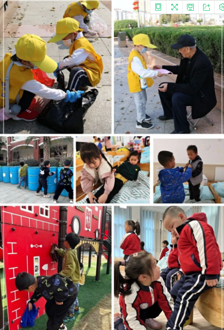 孩子们个个争做“小雷锋”,不仅到小班去帮助弟弟妹妹们穿衣服、穿鞋子,还在园内清扫垃圾、整理玩具、擦洗桌椅,用自己的实际行动学习雷锋叔叔,体验劳动的乐趣,感受帮助别人和服务他人的快乐。